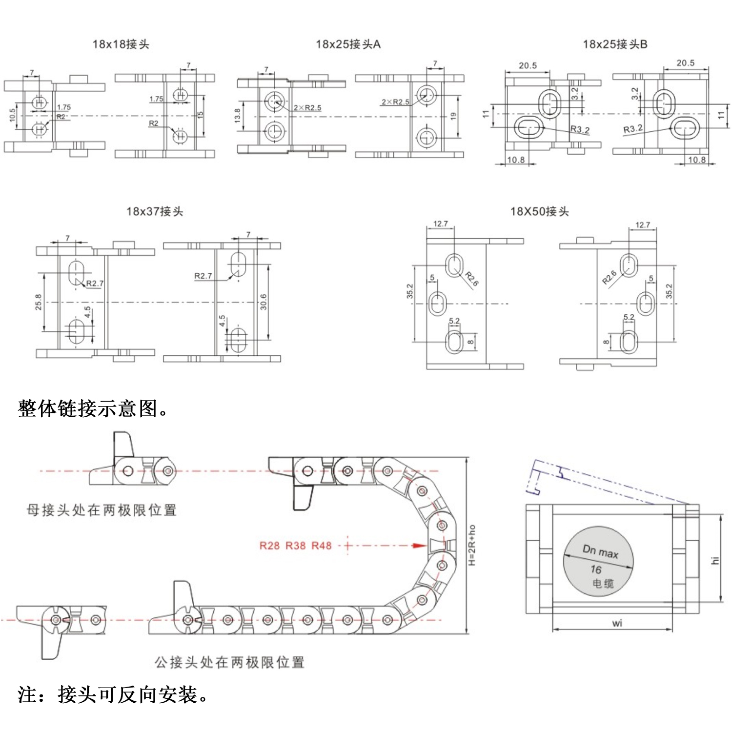 產(chǎn)品優(yōu)點(diǎn) 工程塑料拖鏈具有機(jī)械強(qiáng)度高,耐磨性好、抗沖擊能力強(qiáng),無(wú)論在室內(nèi)外溫度-40℃~+110℃的條件下,不易變形、老化,性能穩(wěn)定,使用壽命長(zhǎng),本廠品廣泛應(yīng)用于各類數(shù)控機(jī)床、工業(yè)自動(dòng)化設(shè)備、工程塑料機(jī)械、電力自動(dòng)化裝配線等各類機(jī)械電氣行業(yè)。